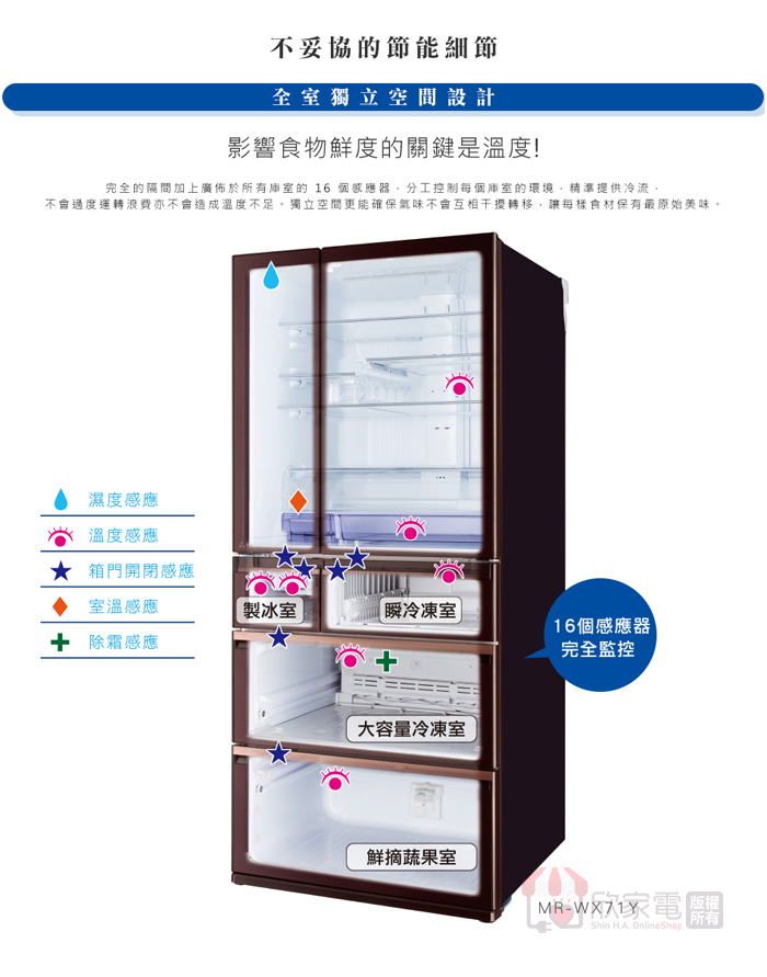 清新潔淨濾網、開門警鈴(冷藏/製冰/冷凍)、ECO偵視器、冷藏室自動關門