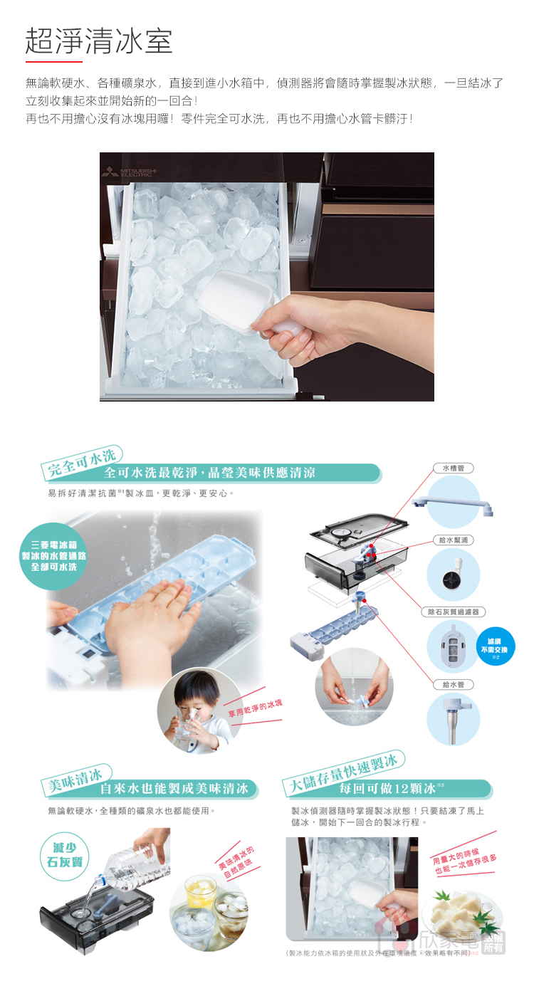 全可洗超淨清冰、抗菌可洗製冰盒、給水管路可水洗、直接給水式自動製冰