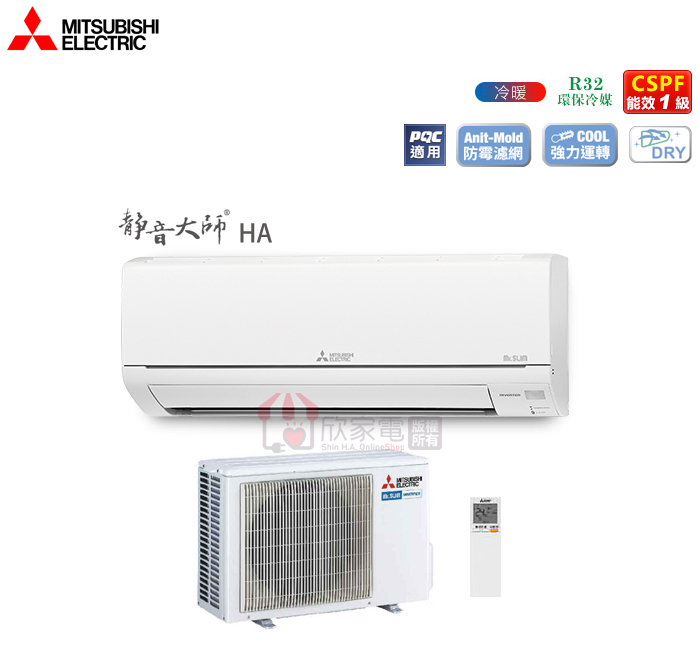 MITSUBISHI 三菱 4坪 【靜音大師 HA系列】 R32變頻冷暖一對一分離式冷氣