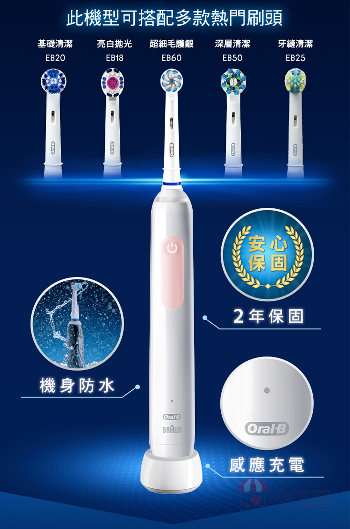 對應刷頭:EB60,EB50,EB20,EB25,EB18,EB17,EB10(兒童建議12歲以上再搭配成人牙刷使用)