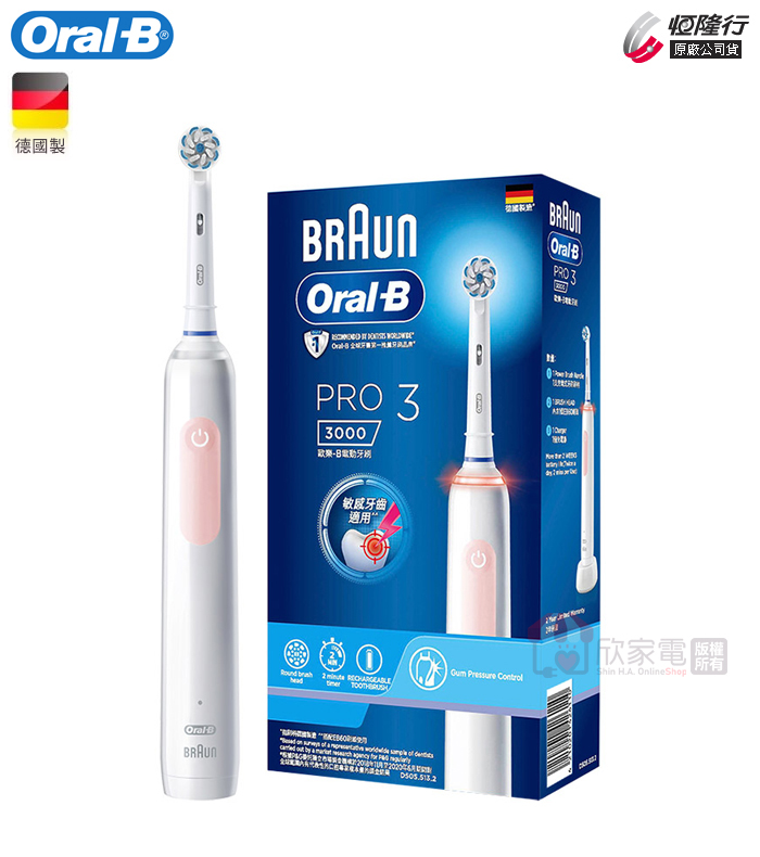 Oral-B 歐樂B PRO3 3D電動牙刷 -馬卡龍粉
