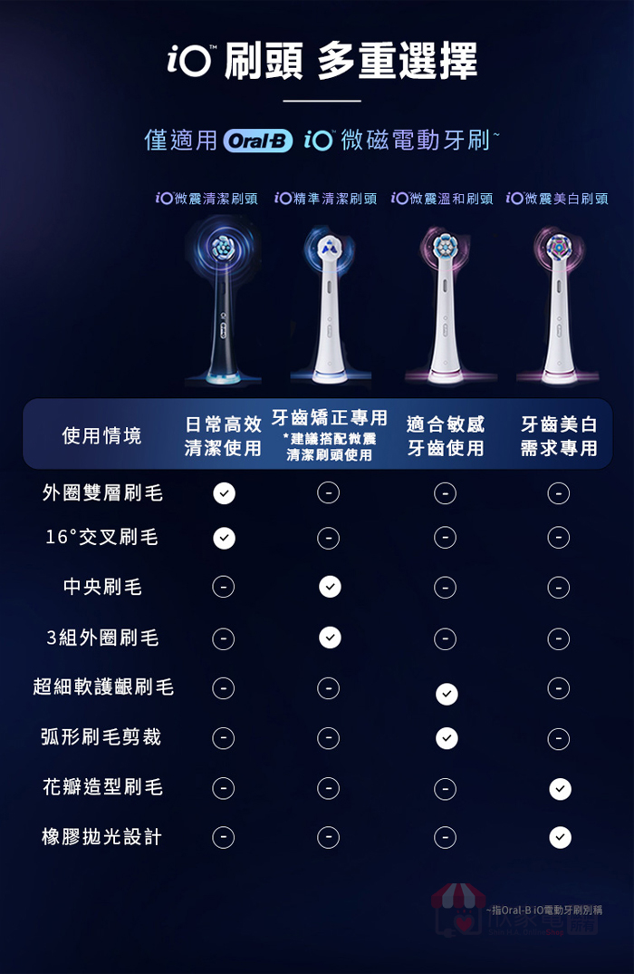 適用牙刷型號: iO系列微磁電動牙刷