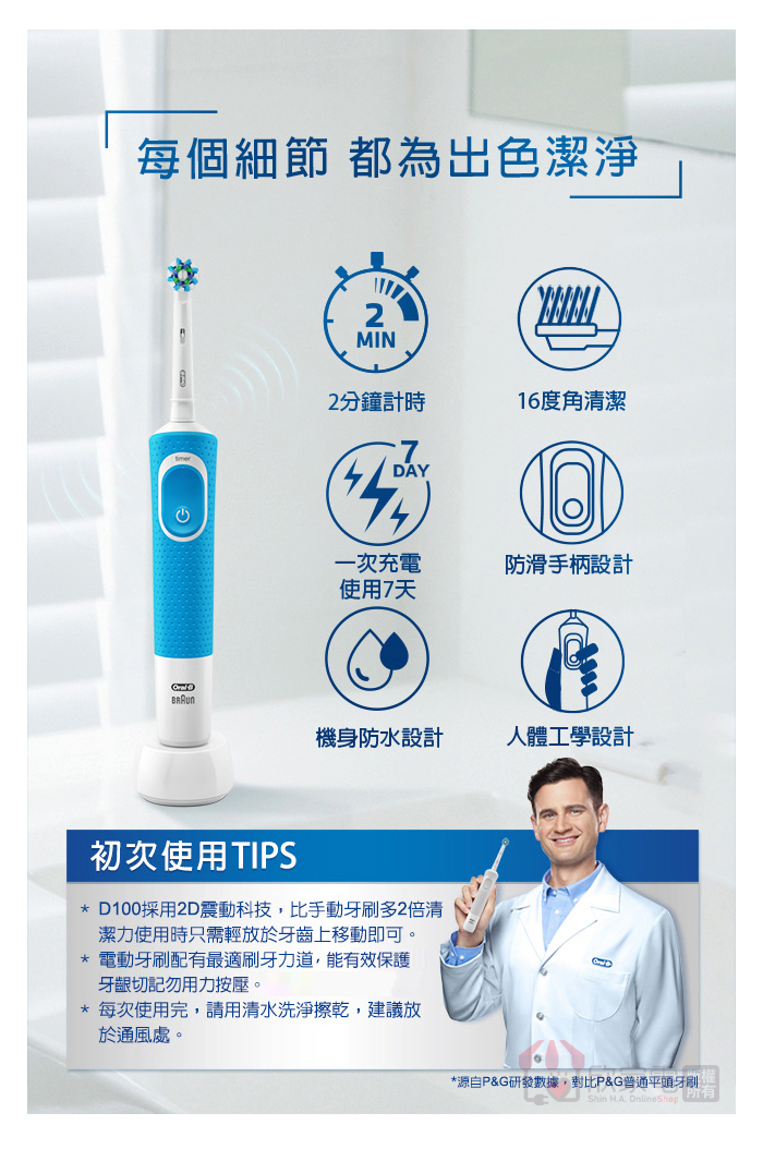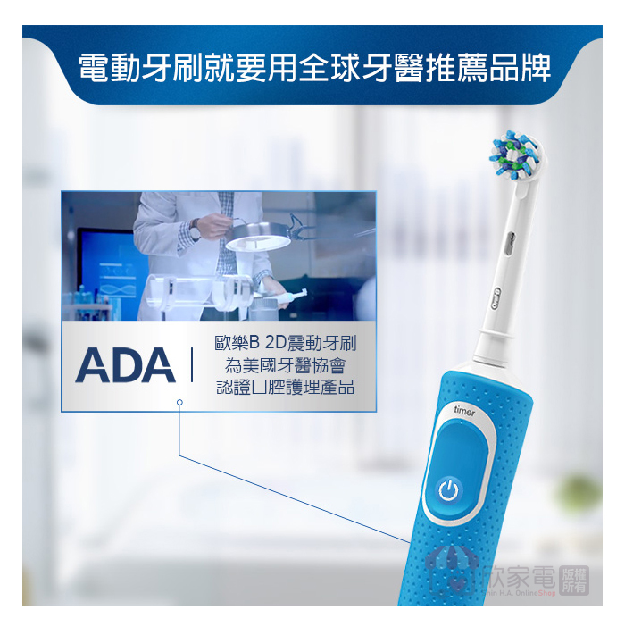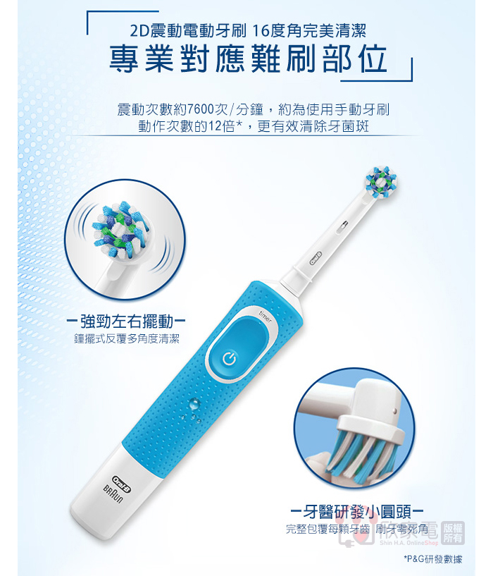 Oral-B 歐樂B 活力亮潔電動牙刷-清新藍(EB50)
