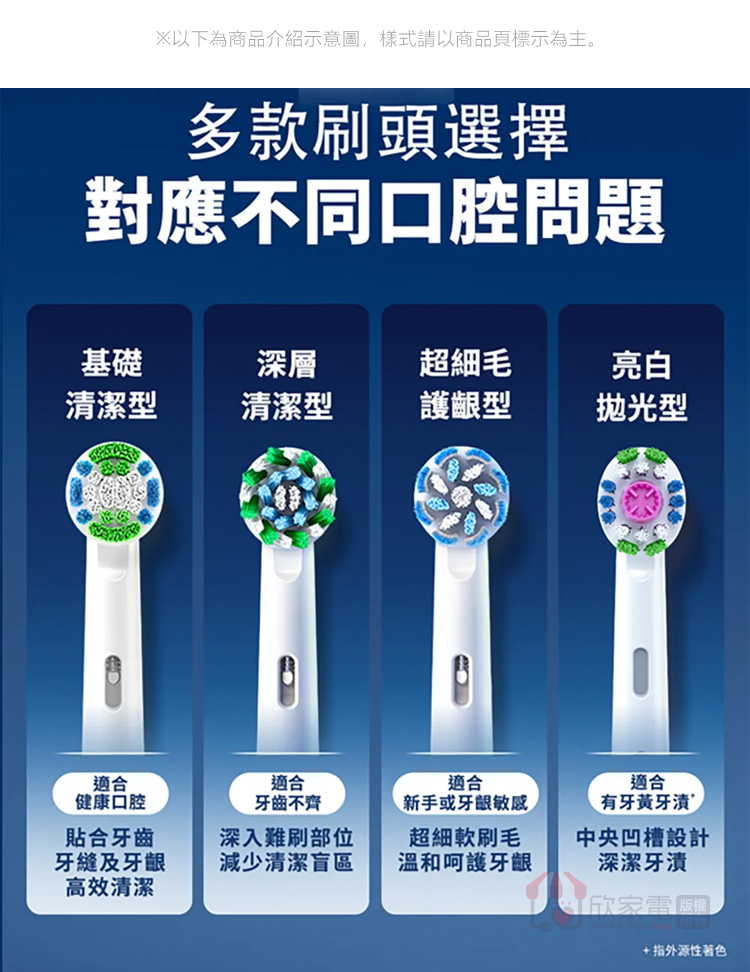 用法:請搭配Oral-B 成人電動牙刷使用。不適用Oral-B多動向電動牙刷(電池式),iO微磁電動牙刷。