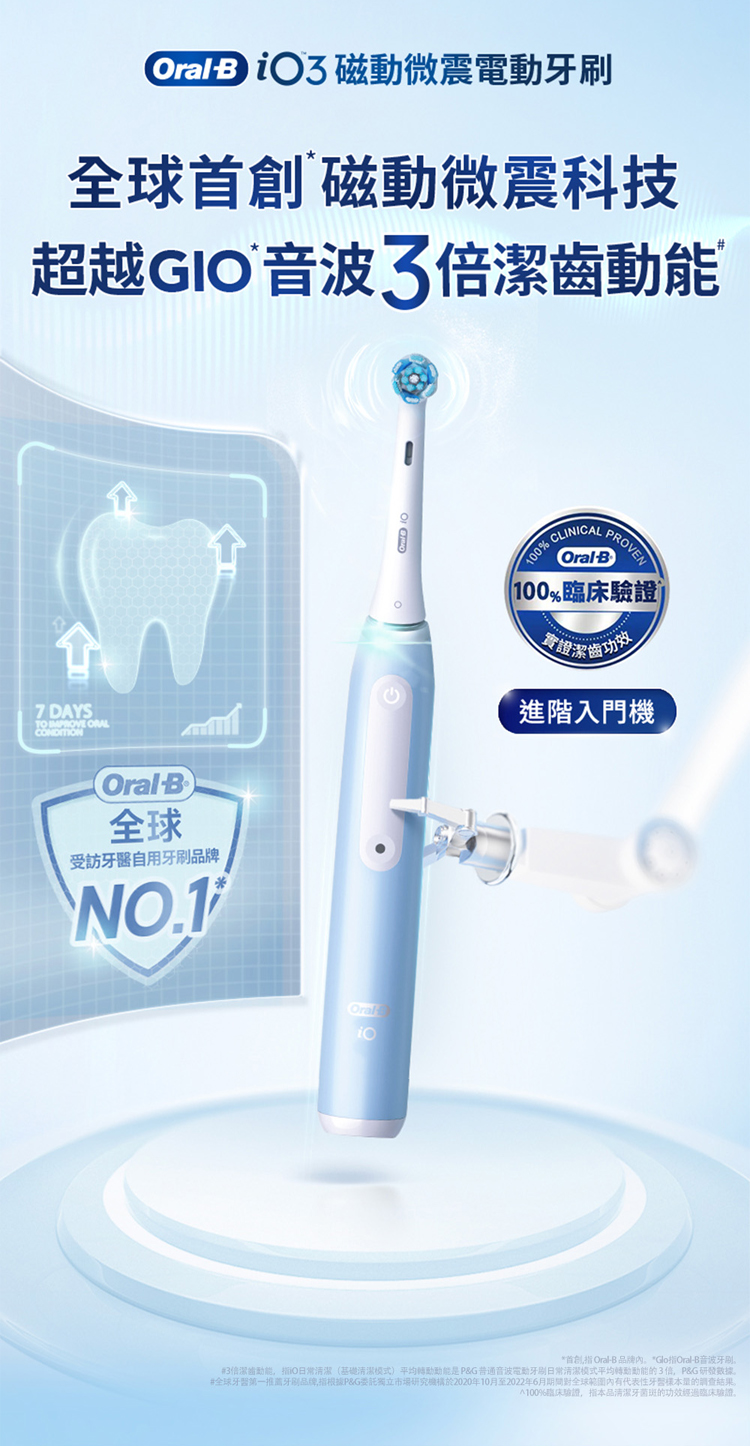 對應刷頭:iO系列刷頭(微震清潔刷頭、微震溫和刷頭、微震美白刷頭、微震精準清潔刷頭)