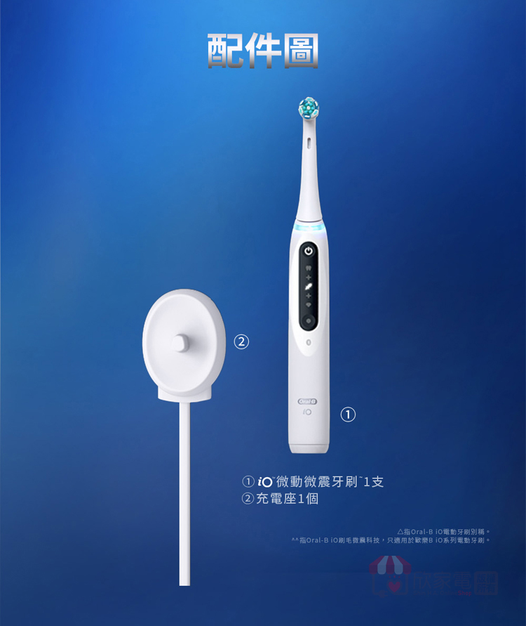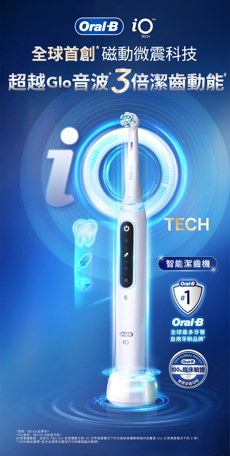 對應刷頭:iO系列刷頭(微震清潔刷頭、微震溫和刷頭、微震美白刷頭、微震精準清潔刷頭)