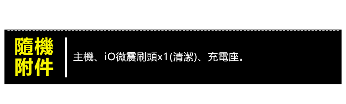 內容配件:主機、iO微震刷頭x1(清潔)、充電座