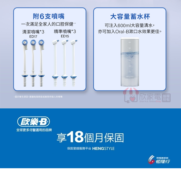 對應刷頭:沖牙刷頭 ED17(噴嘴為德國製)
