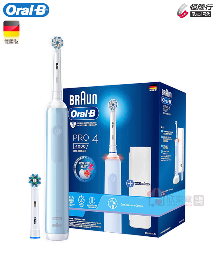 【加碼送原廠刷頭1支(EB20)】Oral-B 歐樂B PRO4 3D電動牙刷 -貝加爾湖藍 -原廠公司貨