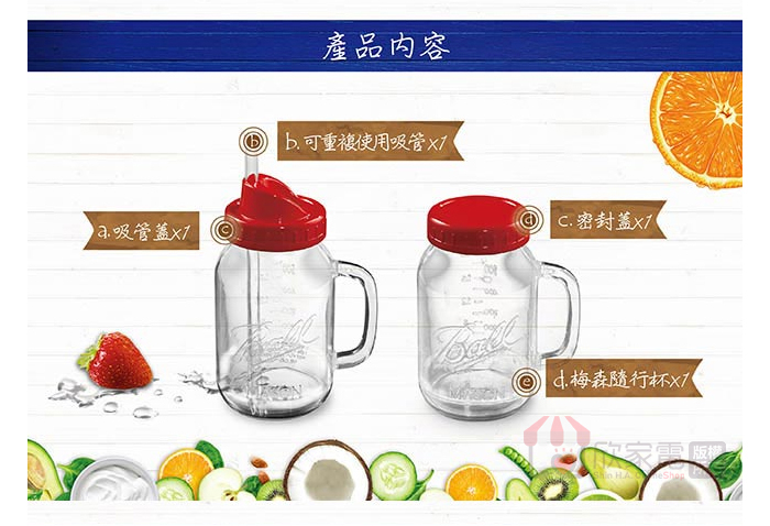 內含:吸管蓋x1、密封蓋x1、塑膠吸管x1