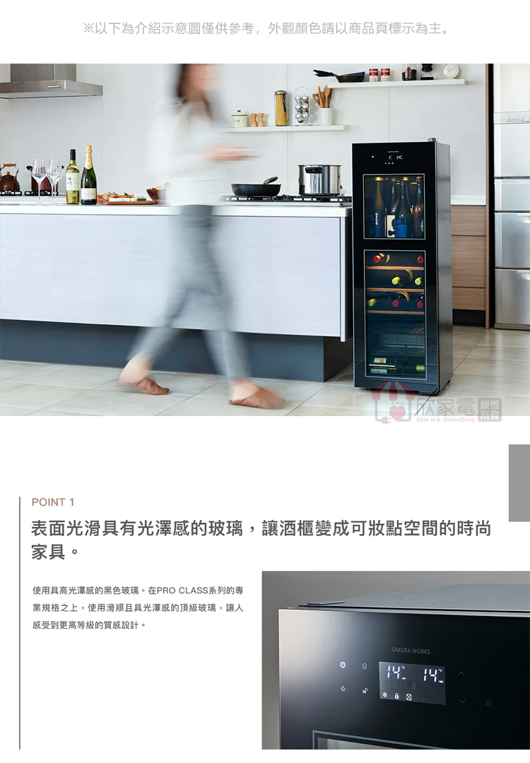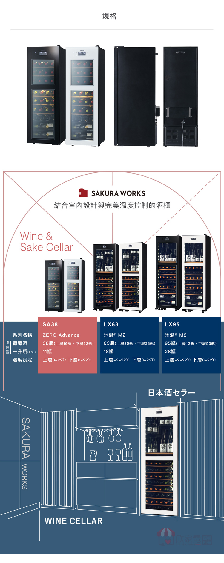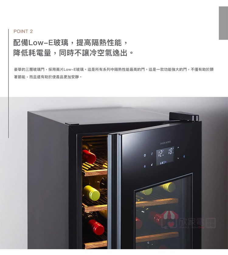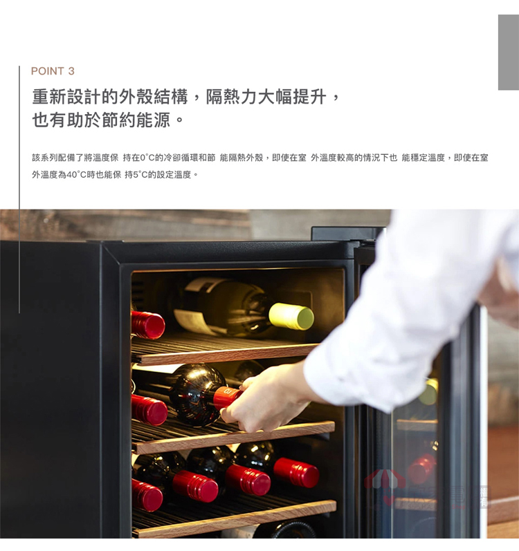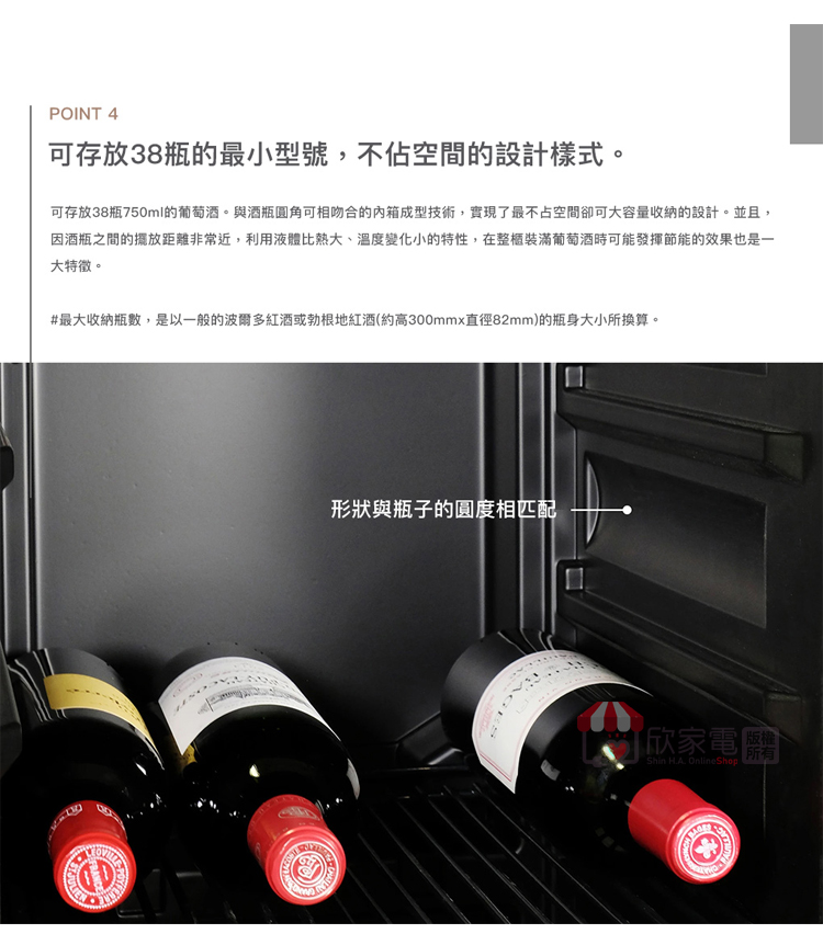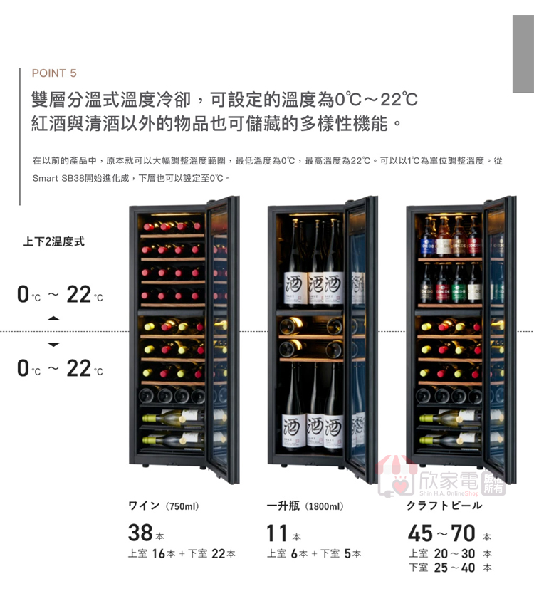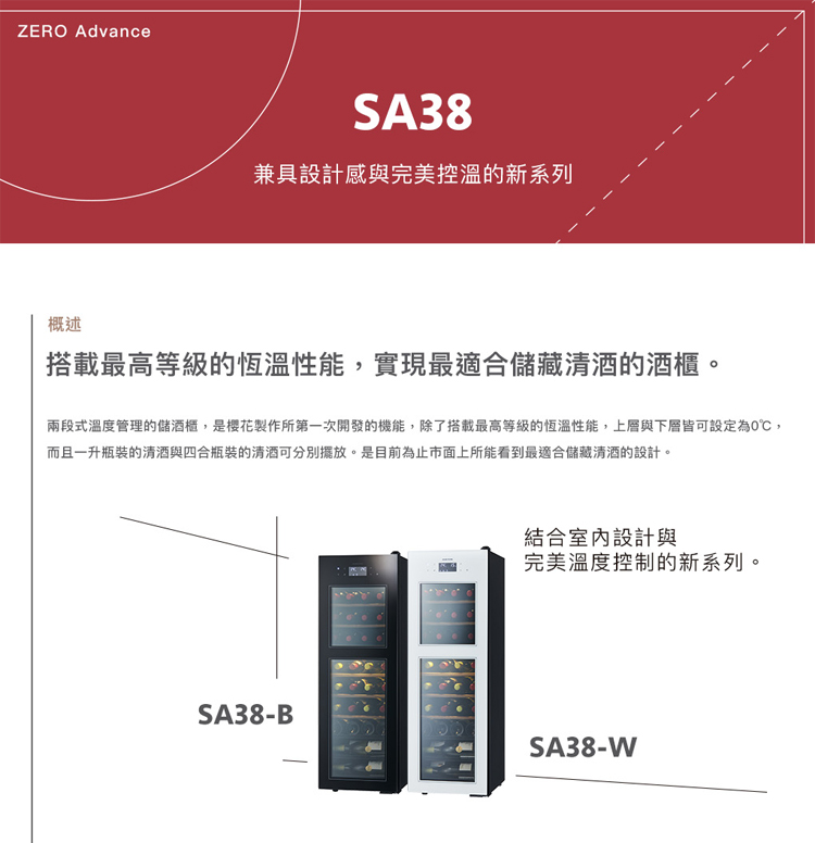 存放數量:葡萄酒38瓶 或 清酒 20瓶 (720ml) 或 清酒 6瓶 (1.8L)