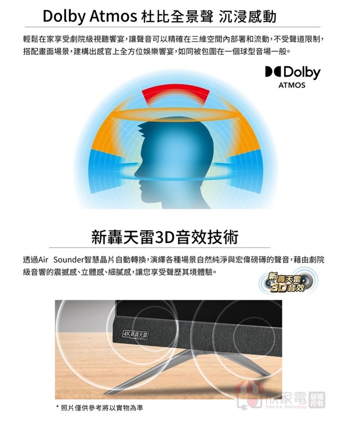 音效認證:新轟天電音效技術 Dolby Atmos 杜比全景聲、Dolby Audio 杜比聲音
