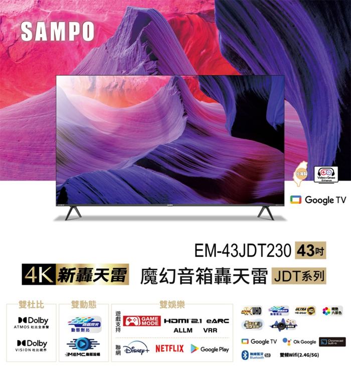 SAMPO 聲寶 43型【4K UHD LED】聯網魔幻音箱轟天雷液晶顯示器