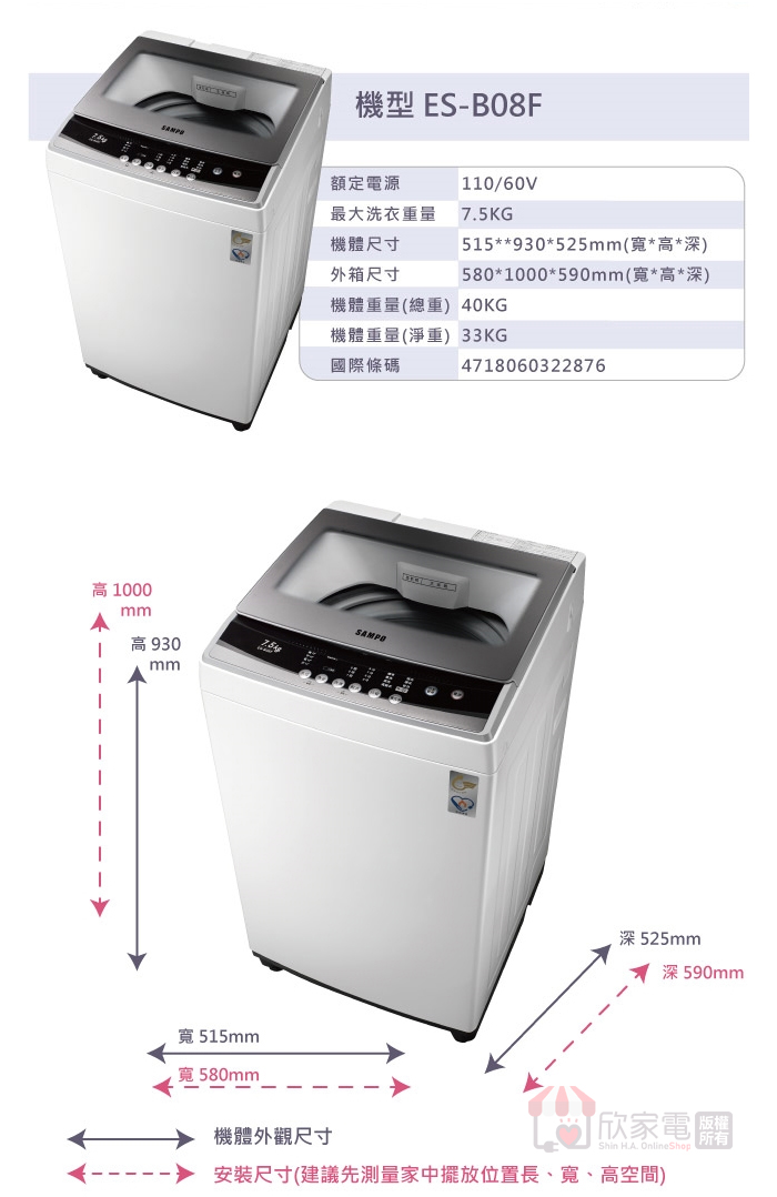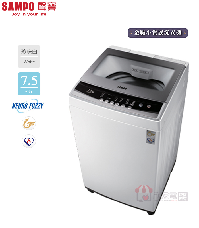 SAMPO 聲寶 7.5KG 3D立體水流定頻單槽洗衣機