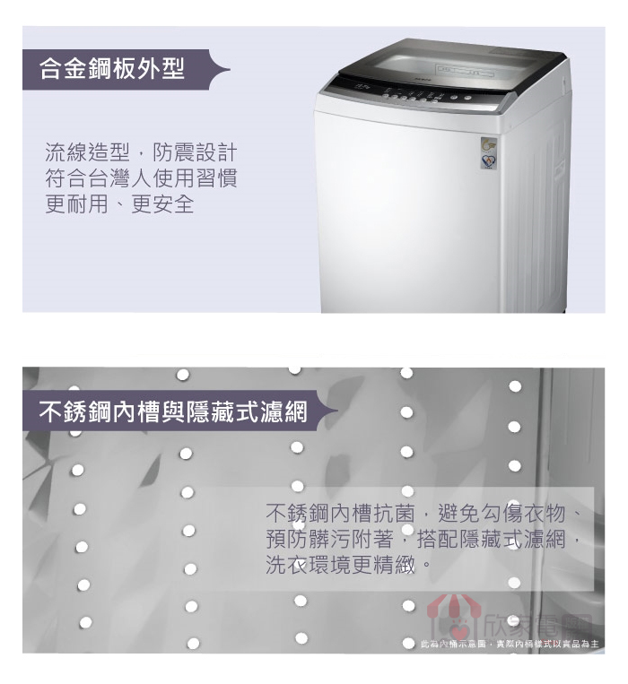 洗衣行程選擇:標準、柔洗、浸洗、高級衣、強洗、快洗、自訂