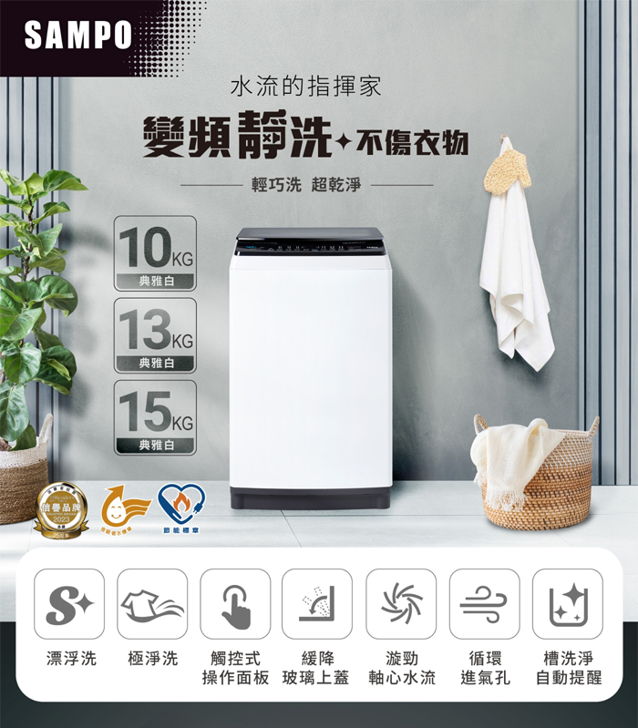 SAMPO 聲寶 13KG 變頻觸控式單槽洗衣機 -典雅白