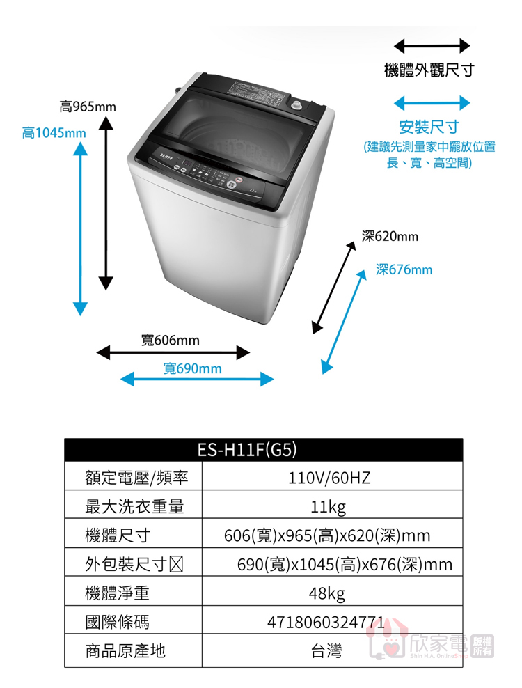 SAMPO 聲寶 11KG 定頻單槽洗衣機 -典雅灰
