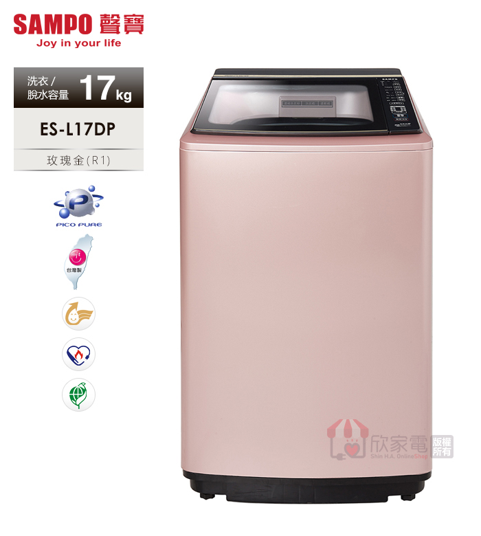 SAMPO 聲寶 17KG PICO PURE 變頻單槽洗衣機 -玫瑰金