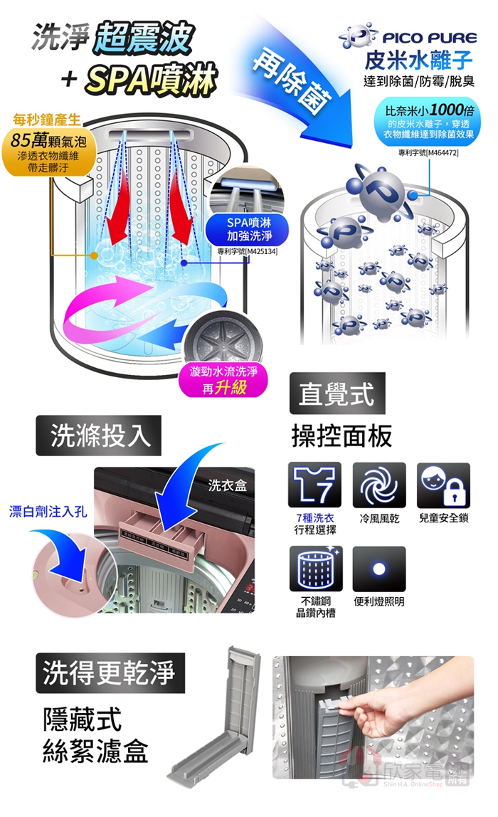 SAMPO 聲寶 19KG PICO PURE 變頻單槽洗衣機