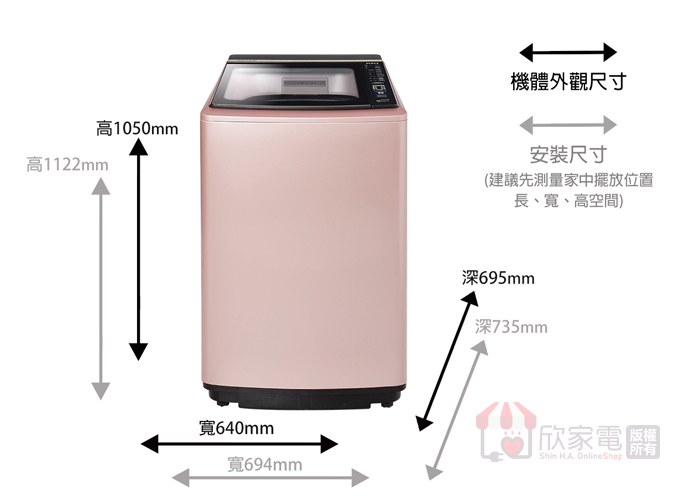 外觀尺寸:W640 × H1050 × D695 (mm)