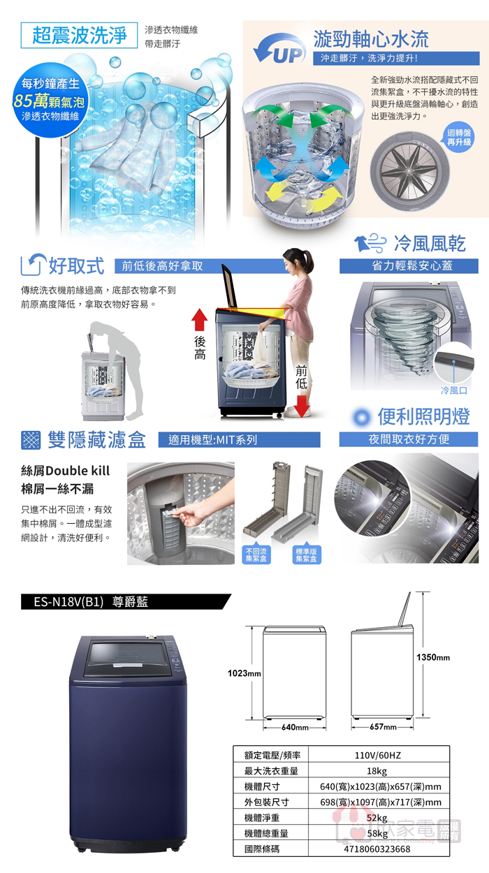 洗衣重量:18 kg