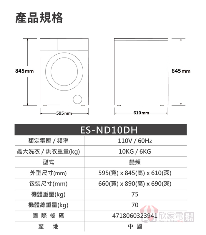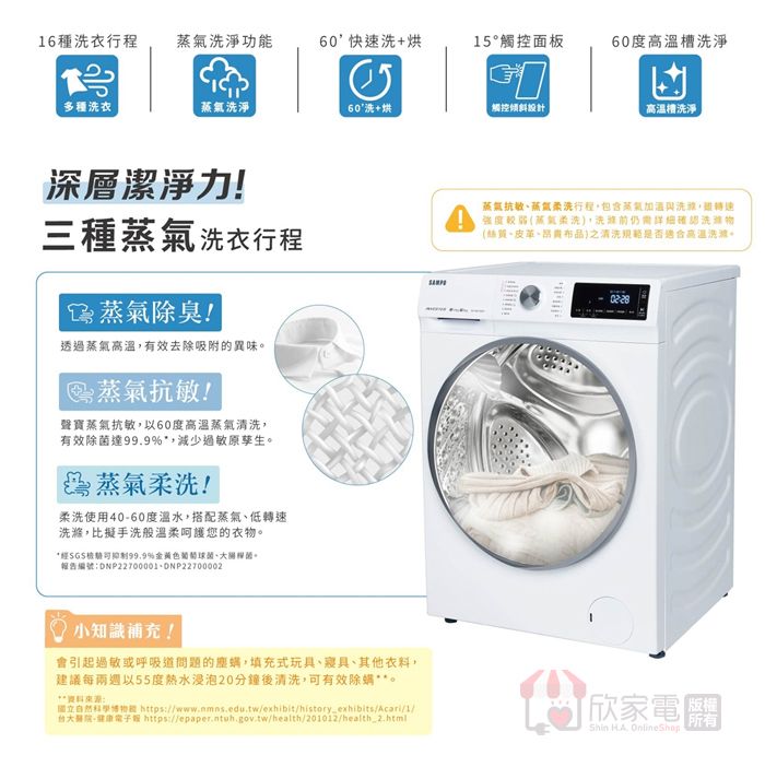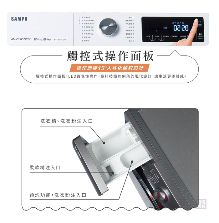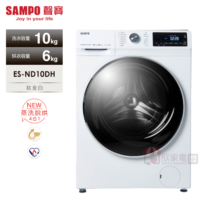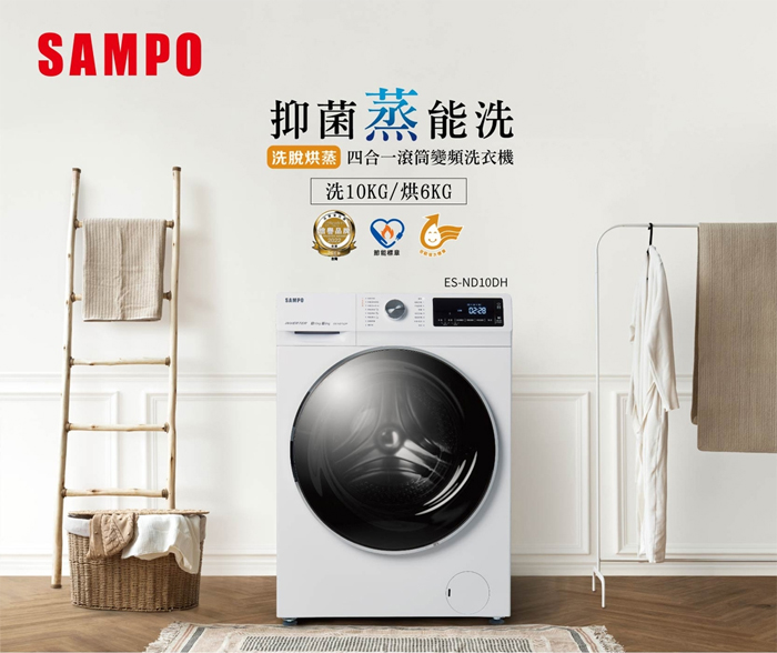 SAMPO 聲寶 10KG【蒸洗脫烘】變頻滾筒洗衣機 -鈦金白