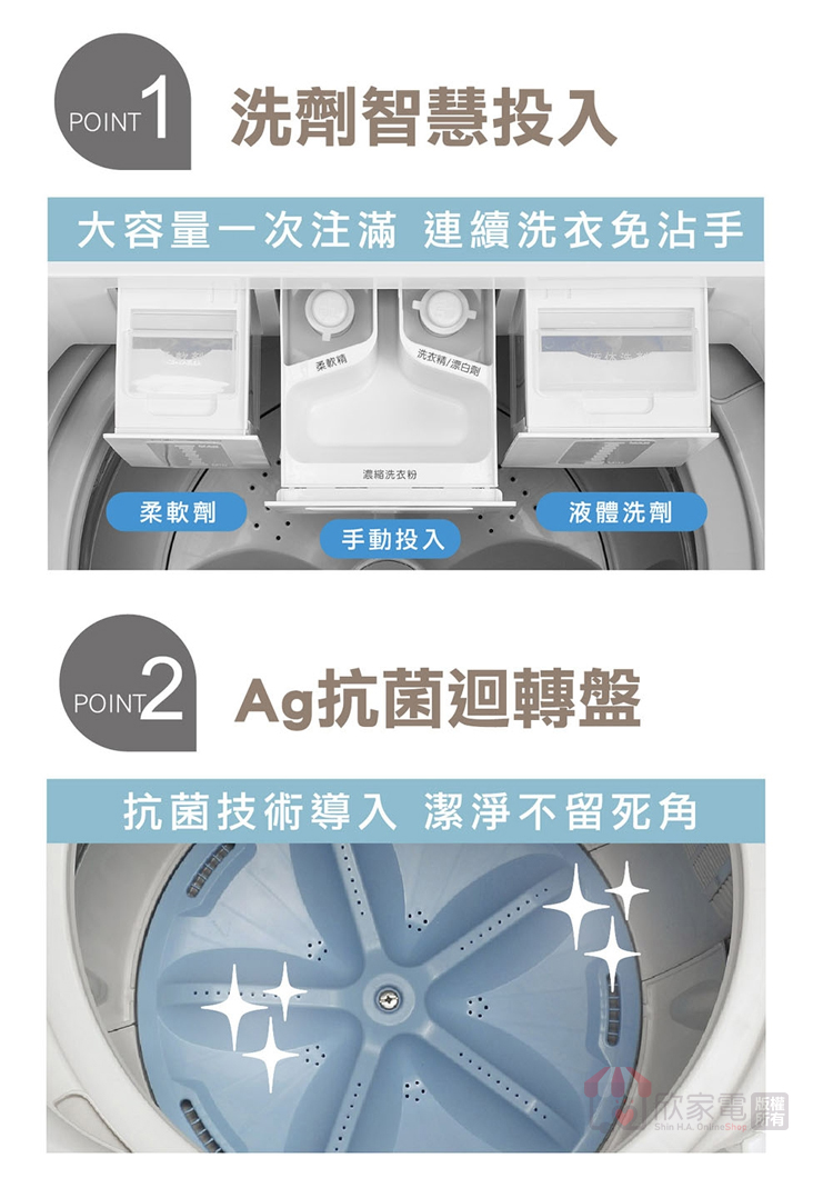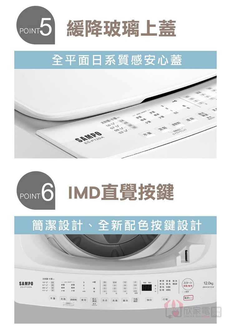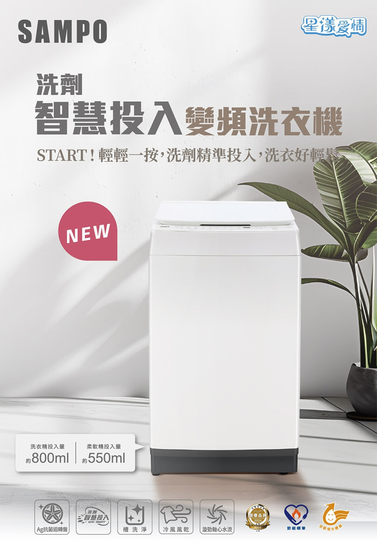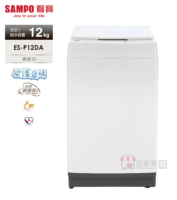 SAMPO 聲寶 12KG 洗劑智慧投入變頻單槽洗衣機 -典雅白