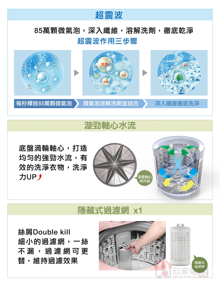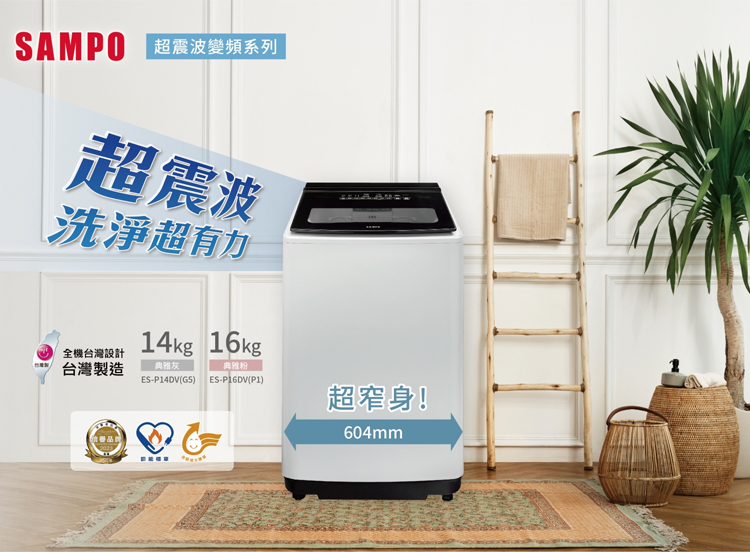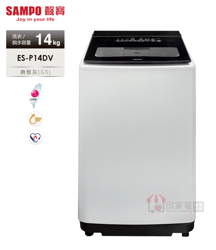 SAMPO 聲寶 14KG 超震波變頻單槽洗衣機 -典雅灰