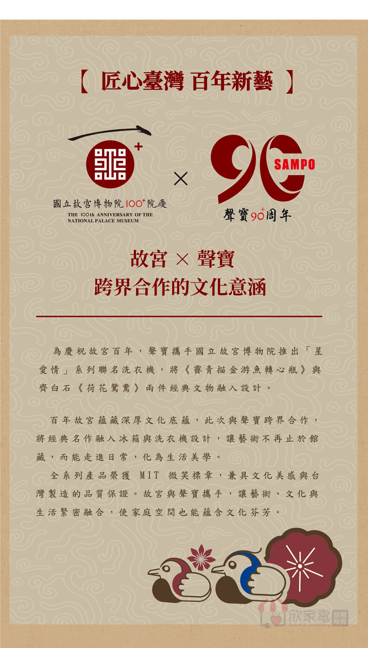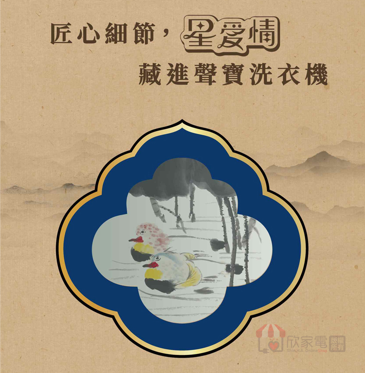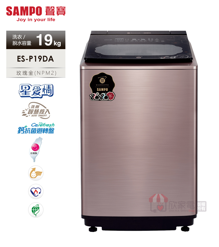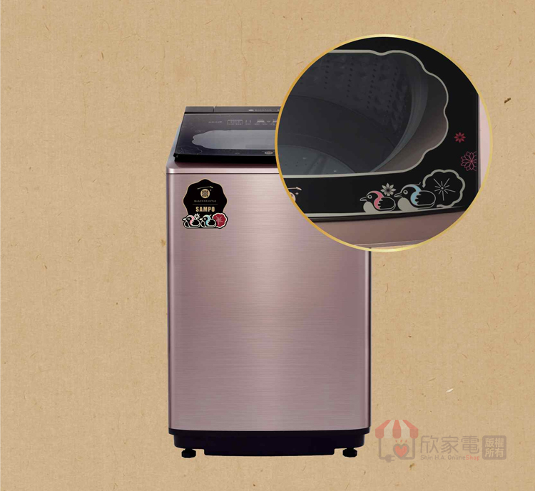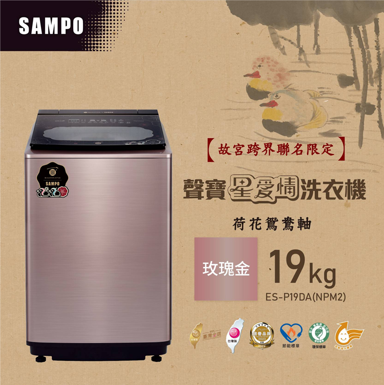 SAMPO 聲寶 19KG【故宮聯名款-荷花鴛鴦軸】洗劑智慧投入變頻單槽洗衣機 -玫瑰金 ES-P19DA/NPM2