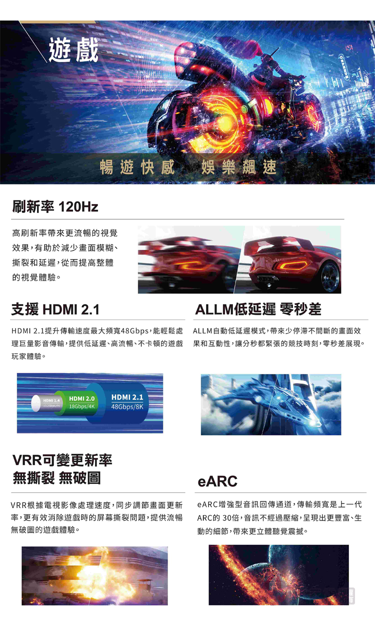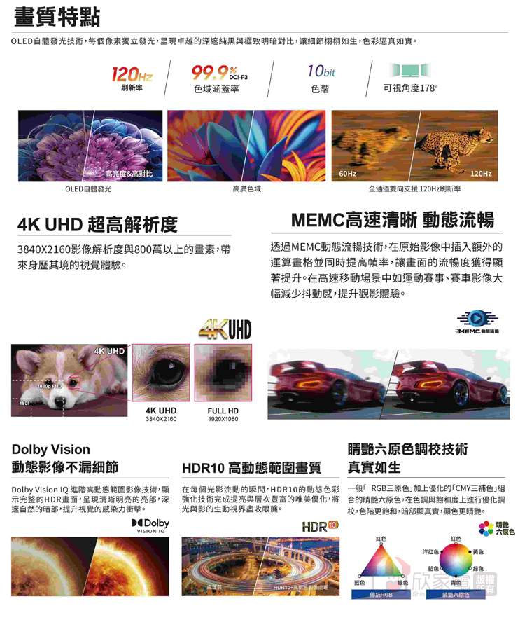 高動態範圍畫質 USB/HDMI:杜比視界(Dolby Vision IQ)、HDR 10、HLG