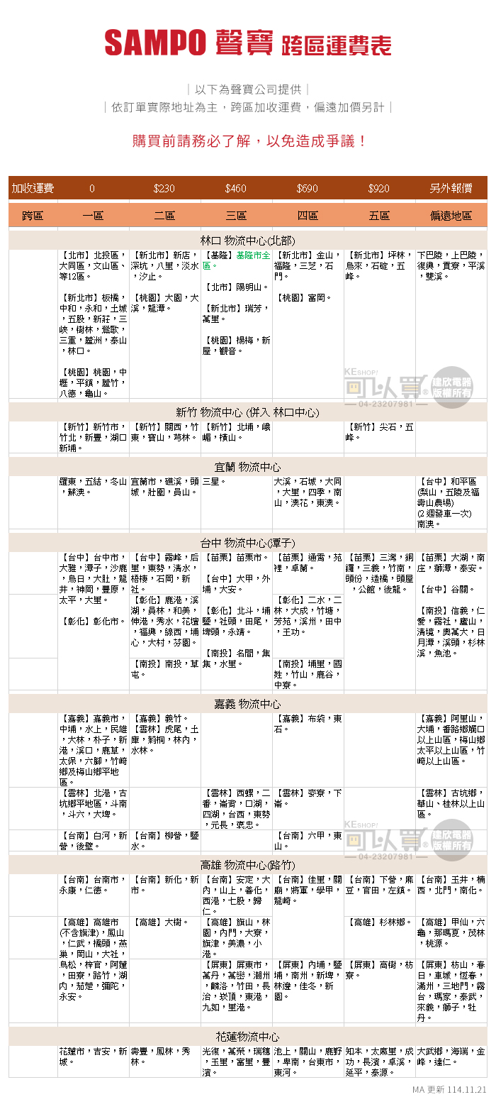 ※依訂單收件地址,跨區需加收運費,站內請搜尋「跨區費」加購。