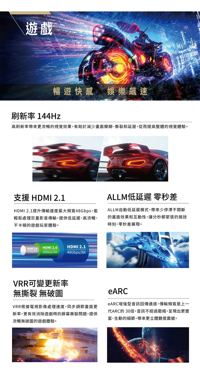 高動態範圍畫質 USB/HDMI:杜比視界 (Dolby Vision)、HDR10、HLG
