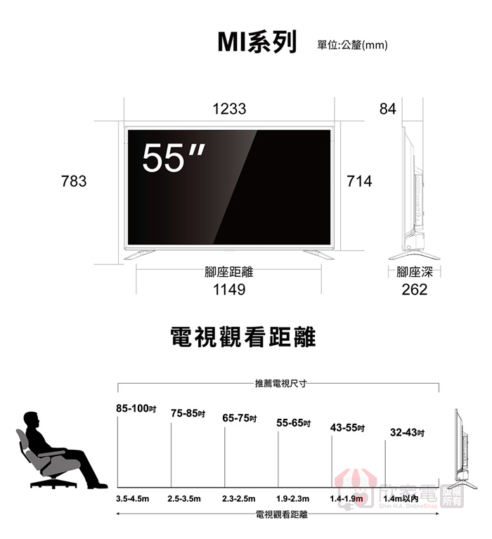 外觀尺寸 (寬x深x高)mm無腳座 W x D x H (mm):1233x84x714mm