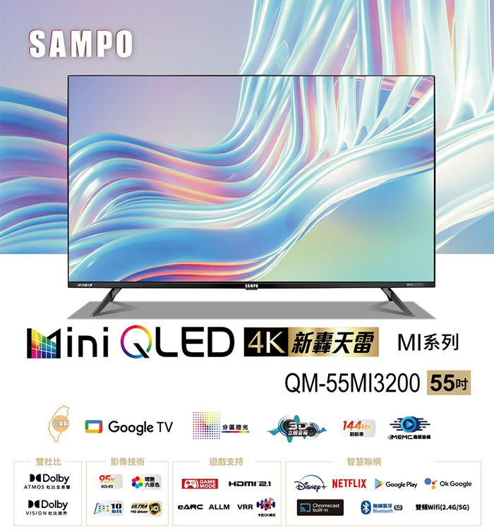 SAMPO 聲寶 55型【4K MINI QLED】聯網新轟天雷液晶顯示器