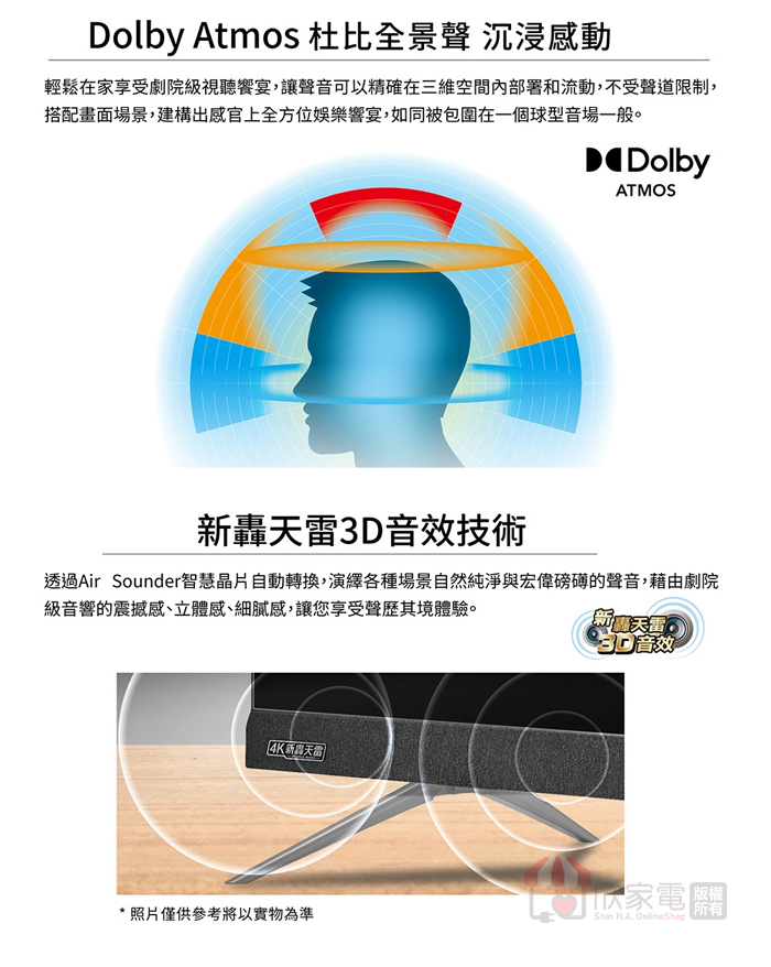 音效:新轟天雷音效技術、Dolby Atmos 杜比全景聲、Dolby Audio 杜比聲音