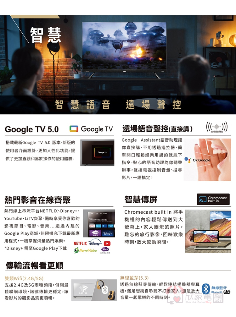 作業系統 (Smart OS):Google TV 5.0