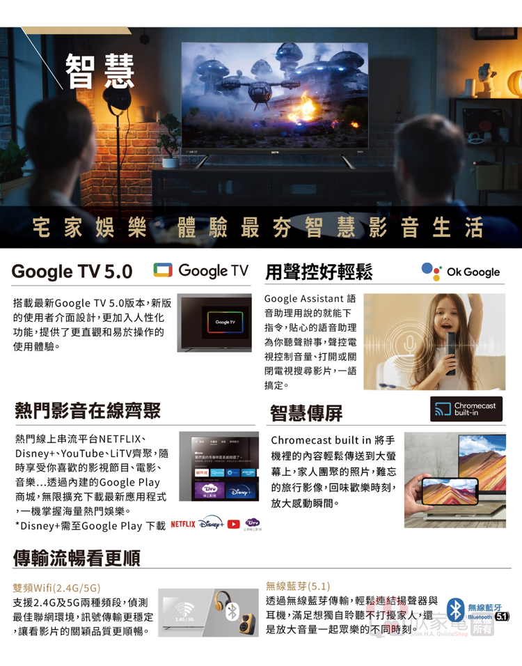 作業系統 (Smart OS):Google TV 5.0
