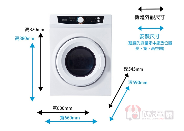 外觀尺寸:W600 × H800 × D545 (mm)