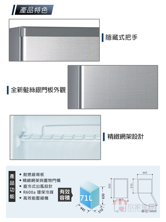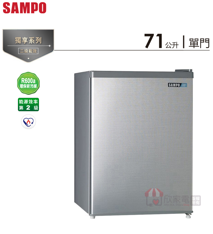 SAMPO 聲寶 71公升 獨享單門冰箱 -髮絲銀