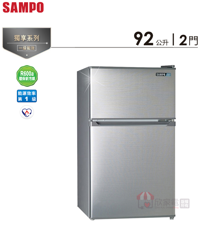 SAMPO 聲寶 92公升 獨享雙門冰箱 -髮絲銀