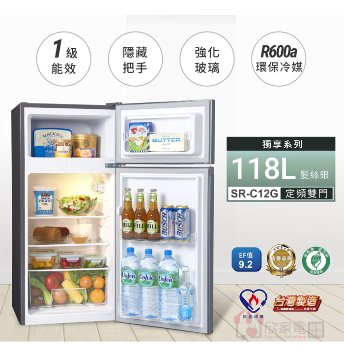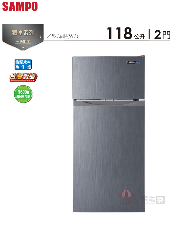 SAMPO 聲寶 118公升 獨享雙門冰箱 -髮絲銀