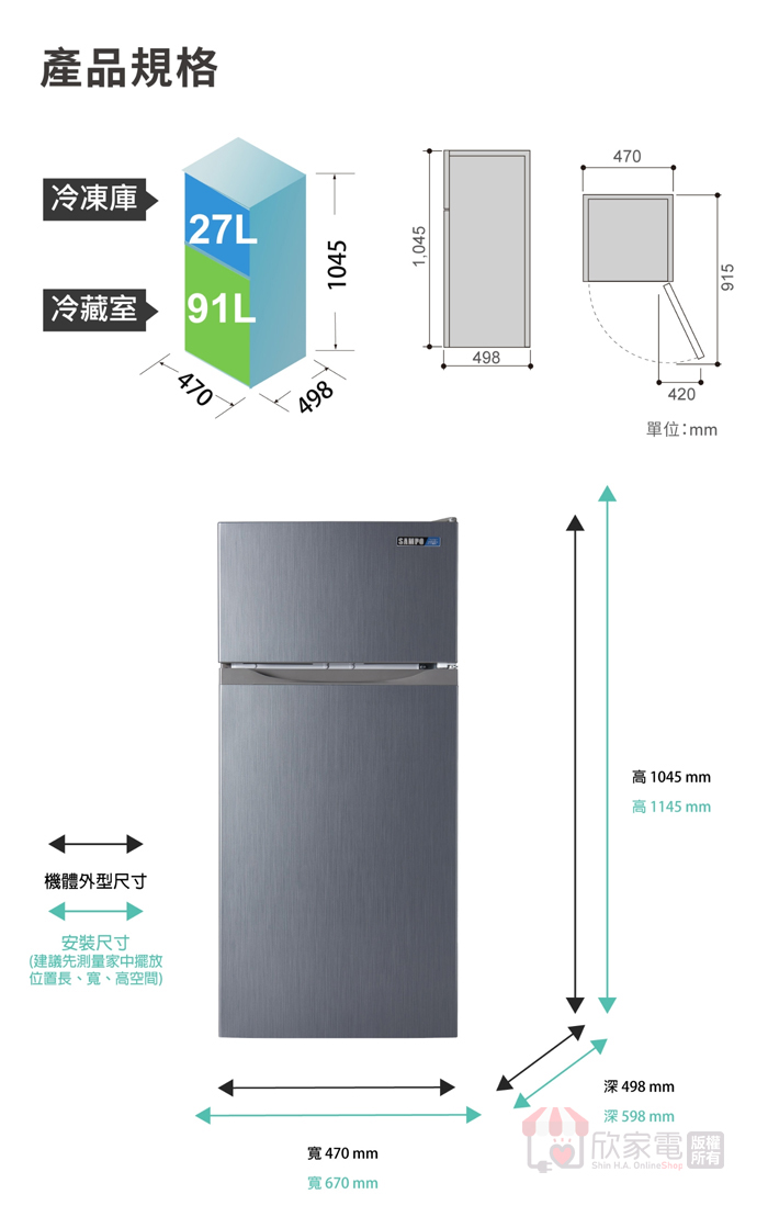 ※安裝處若無電梯需收取樓層搬運費,請至站內分類:其他服務「樓層費」加購。