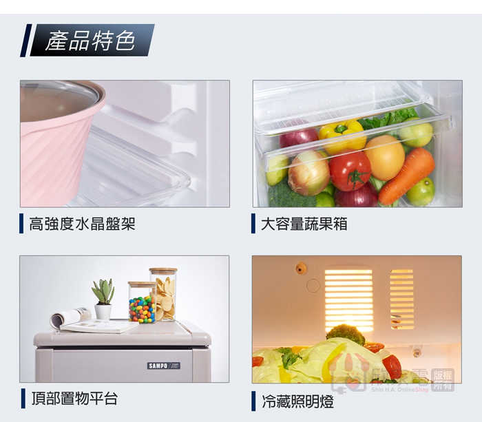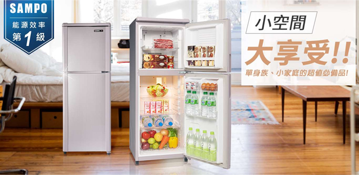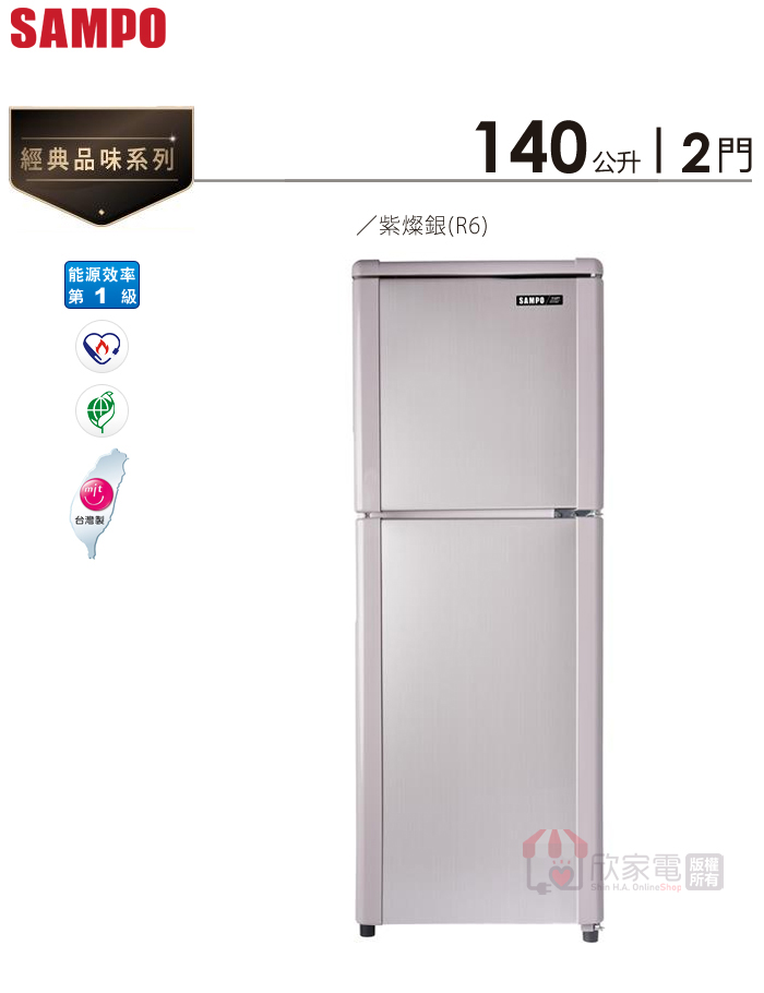 SAMPO 聲寶 140公升 經典定頻雙門冰箱-紫燦銀
