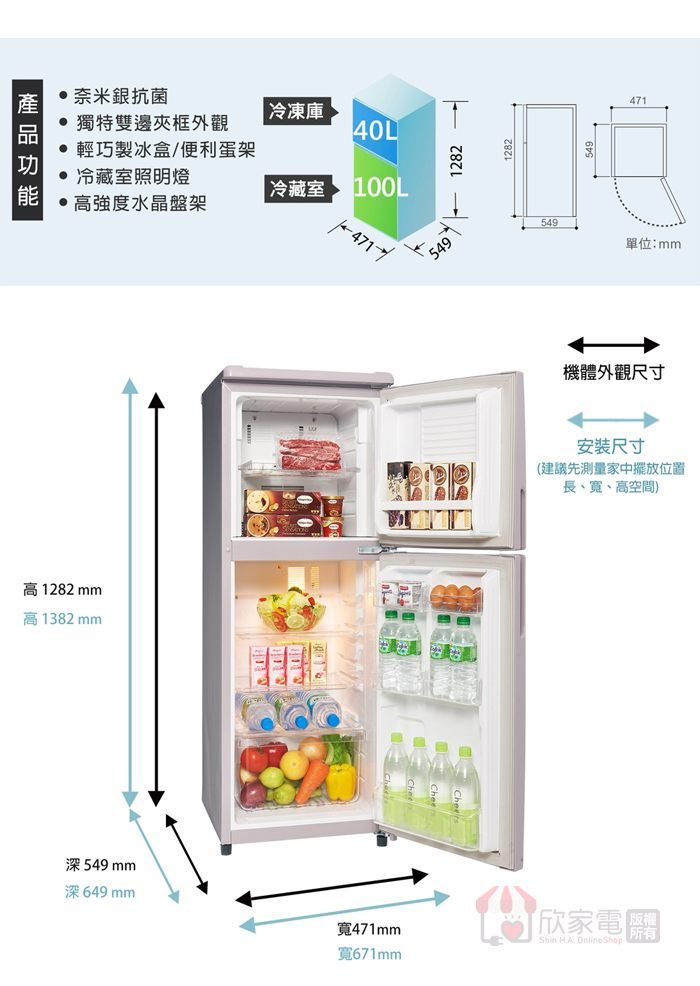 機體尺寸(mm):寬471 × 高1282 × 深549