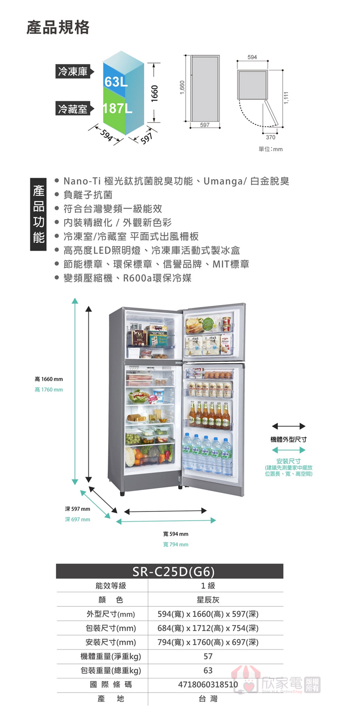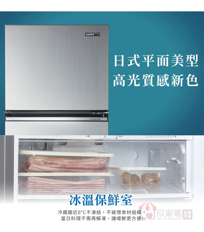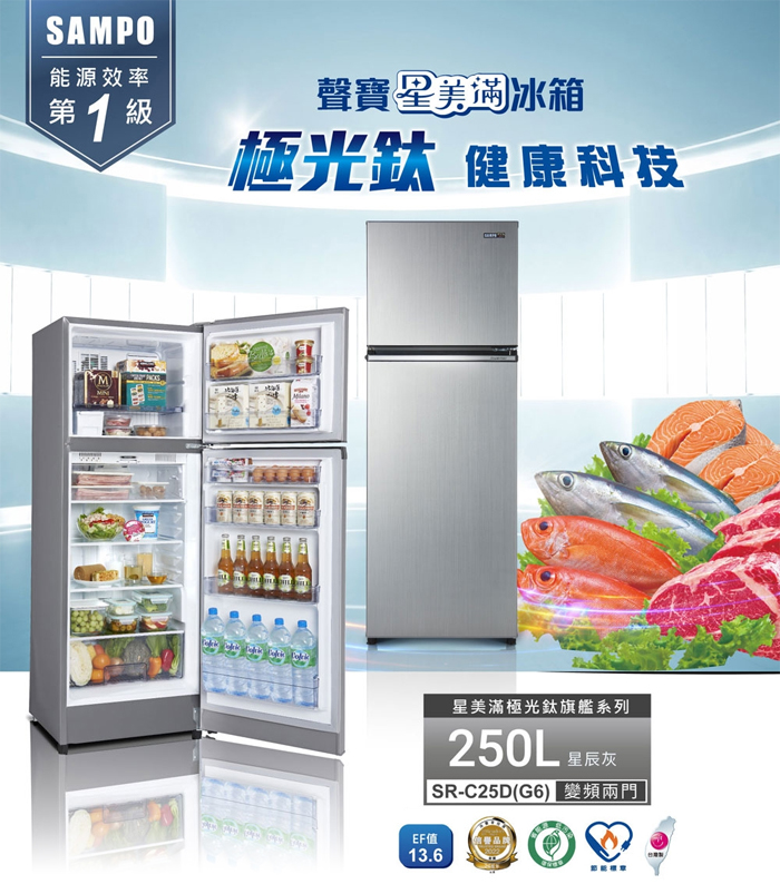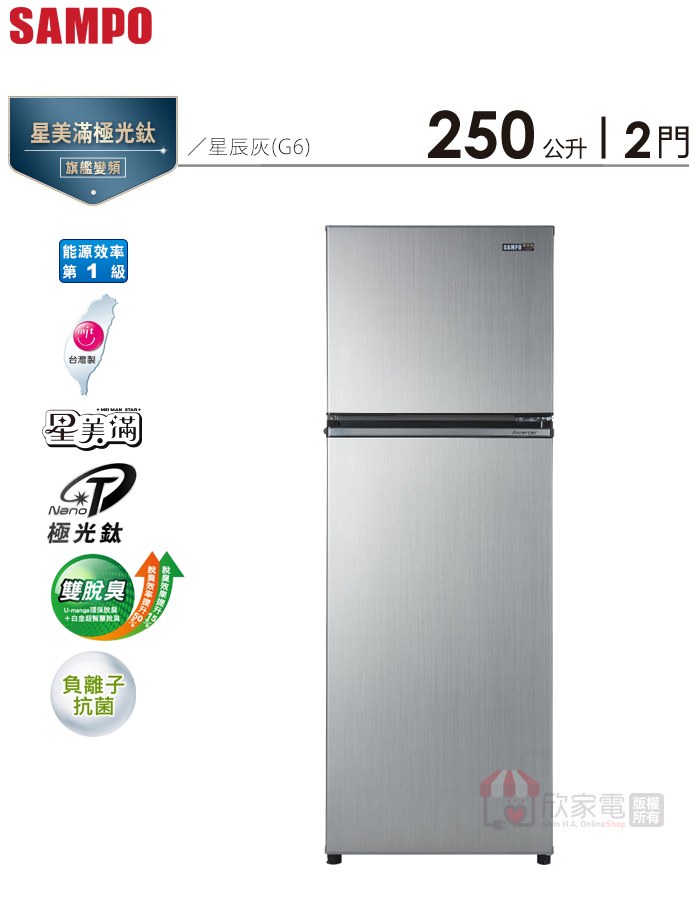 SAMPO 聲寶 250公升 星美滿極光鈦變頻雙門冰箱 -星辰灰