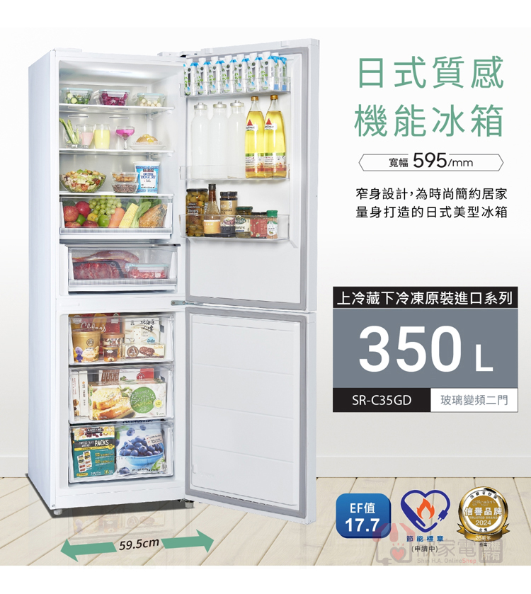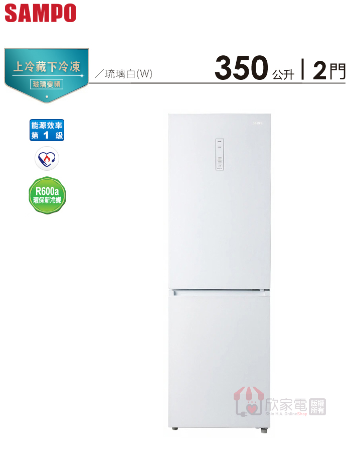 SAMPO 聲寶 350公升 星漾美滿變頻雙門冰箱 -琉璃白