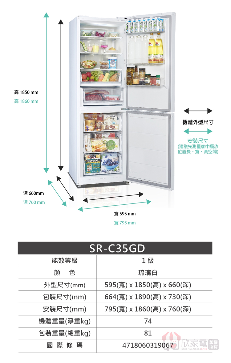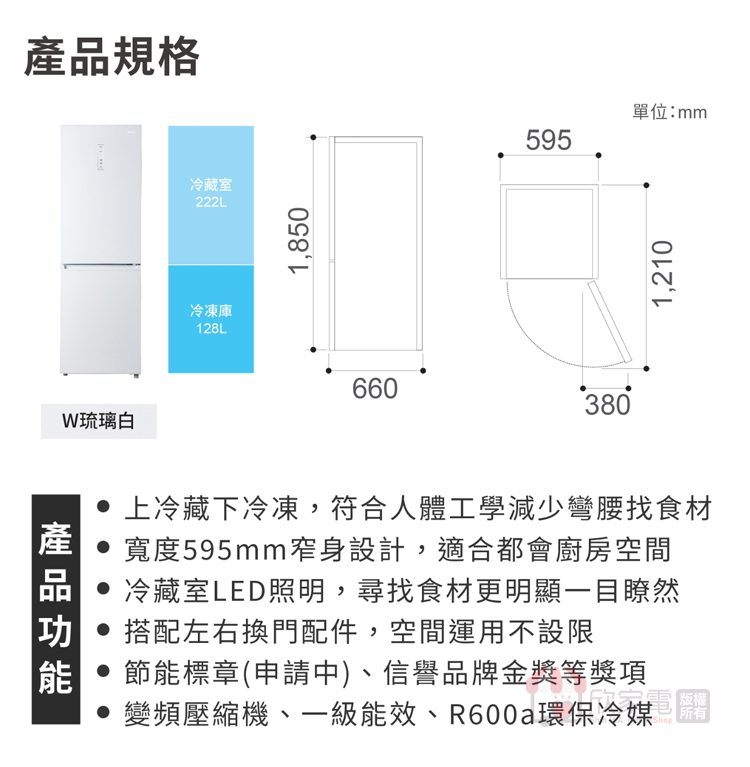 外型尺寸(mm):寬595 × 高1850 × 深660