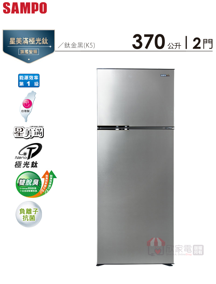 SAMPO 聲寶 370公升 星美滿極光鈦變頻雙門冰箱 -鈦金黑