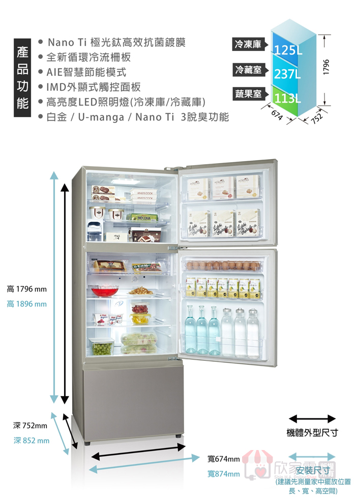 機體尺寸(mm):寬674 × 高1796 × 深752