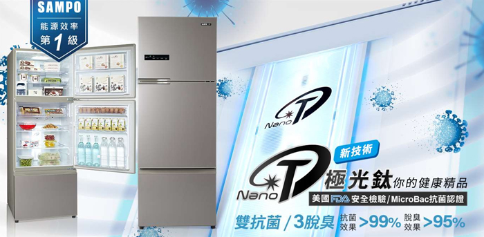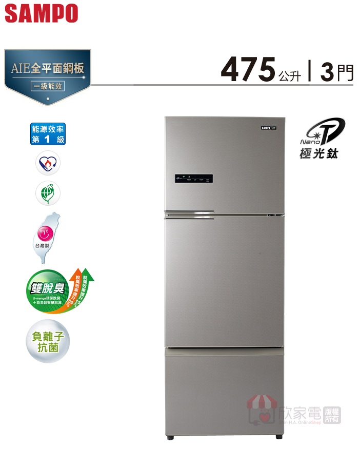 SAMPO 聲寶 475公升 NanoTi 變頻三門冰箱